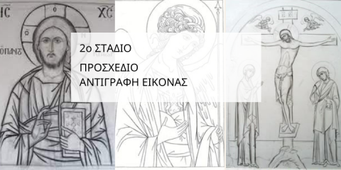 Πριν ξεκινήσει η ζωγραφική πρέπει να έχουμε ένα ακριβές σχέδιο του έργου που θα φτιάξουμε. Είθισται να σχεδιάζεται η εικόνα με μολύβι πρώτα σε χαρτί σε ελεύθερο σχέδιο είτε με την τεχνική του ξεπατικώματος. Μόλις το σχέδιο είναι έτοιμο χρησιμοποιούμε είτε ένα καρμπόν γραφίτη είτε ένα ριζόχαρτο στην πίσω πλευρά του οποίου έχουμε περάσει σκόνη χρώματος χονδροκόκκινου και με αυτό μεταφέρουμε το σχέδιο πάνω στο ξύλο στο οποίο θα ζωγραφίσουμε την εικόνα. Μόλις «πατήσουμε» το σχέδιο, χρησιμοποιούμε χρώμα, συχνά όμπρα ψημένη για να τονίσουμε τις γραμμές του σχεδίου πάνω στο ξύλο και να μην χαθούν μόλις περαστούν οι προπλασμοί.