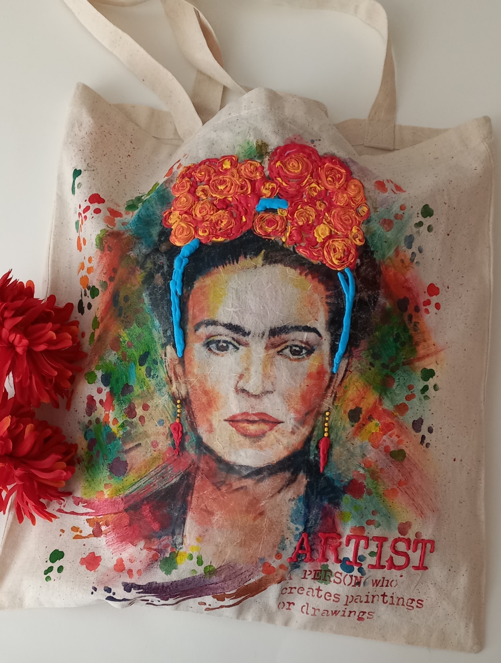Η Αγάπη Φραγκιάδη μας δείχνει βήμα βήμα πως να διακοσμήσουμε την δική μας υφασμάτινη τσάντα με την Μεξικάνα ζωγράφο Frida Kahlo.
