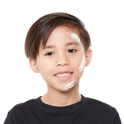 Βήμα 1: Χρησιμοποιώντας ένα μεγάλο στρογγυλό πινέλο, για να δημιουργήστε το σχήμα φαντάσματος στο κέντρο του προσώπου και πάνω από τα φρύδια με το λευκό κλασσικό χρώμα.