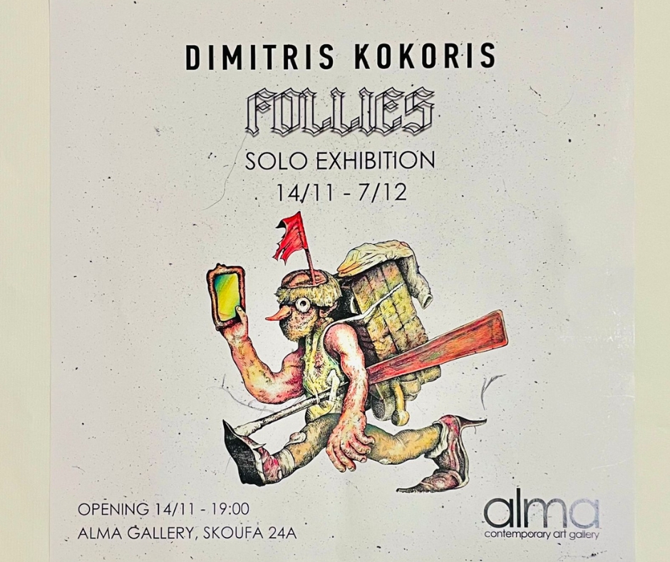 Η ατομική έκθεση "Follies" του Δημήτρη Κοκορή θα φιλοξενηθεί από τις 14 Νοεμβρίου έως τις 7 Δεκεμβρίου 2024 στην Alma Contemporary Art Gallery.