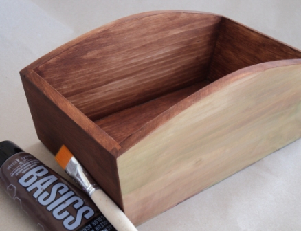 2 – Ακολουθώντας την ίδια διαδικασία, βάφουμε το εσωτερικό του καλαθιού και τις δύο μικρότερες πλευρές στο εξωτερικό, με το ακρυλικό χρώμα BASICS Burnt Umber.