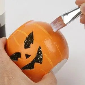 Εφόσον τα χρώματα έχουν στεγνώσει καλά, περνάμε όλη την κολοκύθα με ένα γυαλιστερό βερνίκι.