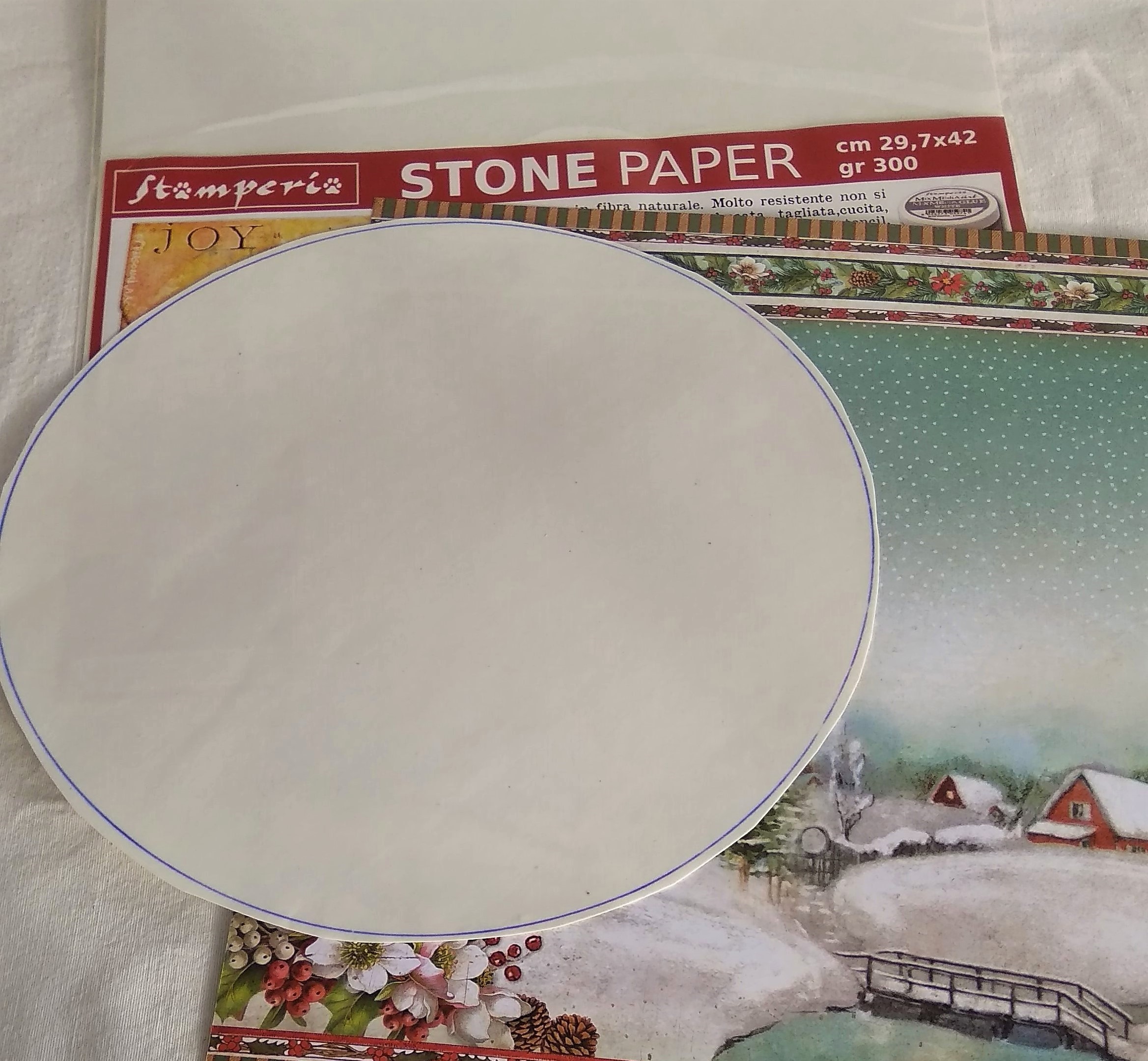 1 – Κόβουμε το stone paper σε σχήμα κύκλου αντίστοιχο με τη διάμετρο που έχει το στεφάνι.