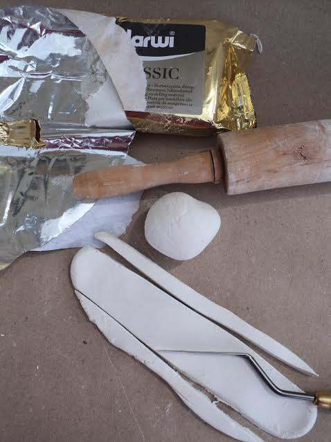 2 – Πλάθουμε τον πηλό σε σχήμα μπάλας. Στη συνέχεια τον “ανοίγουμε” με τη βοήθεια ενός πλάστη και τον κόβουμε με την πιο μακριά και λεπτή σπάτουλα, σε ίσες λωρίδες. Ανάλογα με το φάρδος του κουτιού, θα χρειαστούμε περίπου τέσσερις λωρίδες.