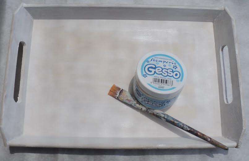 1. Με ένα πινέλο περνάμε μια στρώση Gesso σε όλη την επιφάνεια του δίσκου. (Το Gesso “κλείνει” τους πόρους του ξύλου και βοηθά να στρώνουν καλύτερα τα χρώματα).