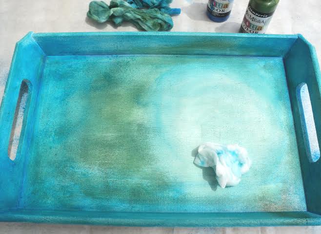 3. Αφού στεγνώσουν καλά τα χρώματα, μπορούμε να τρίψουμε κάποια σημεία με ένα μωρομάντηλο για να αφαιρέσουμε λίγο χρώμα. Στα σημεία αυτά, θα φανεί το άσπρο χρώμα του gesso.