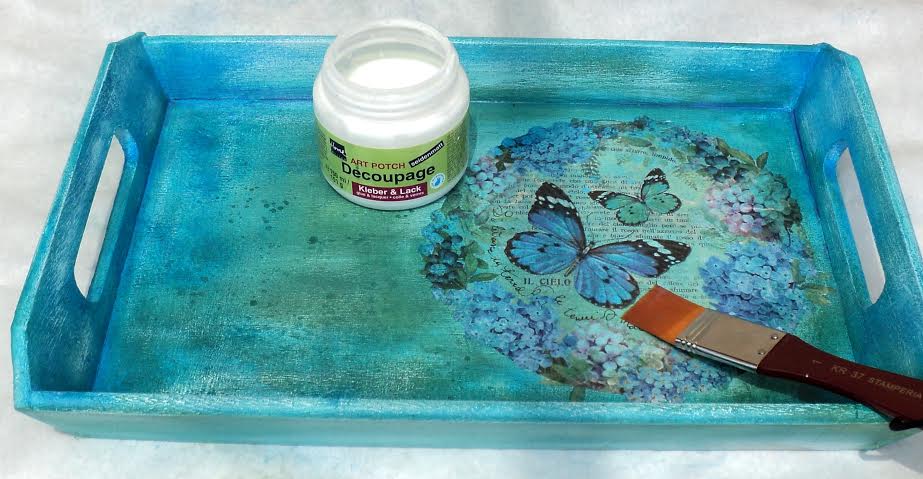 7. Περνάμε μία στρώση από το ανθεκτικό βερνίκι νερού Wash-It της Stamperia για να κάνουμε το δίσκο μας “αδιάβροχο”!
