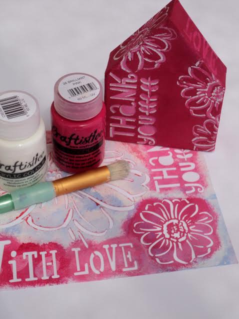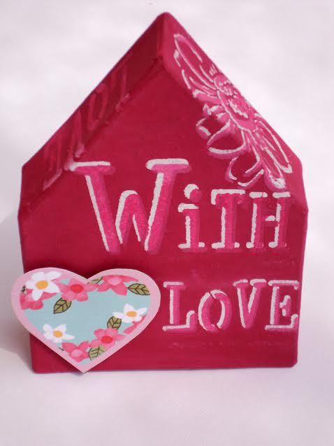 1 – Βάφουμε το χάρτινο σπιτάκι με το ακρυλικό χρώμα Brilliant Pink.