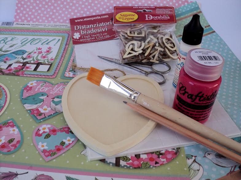 1 – Σχεδιάζουμε με το μολύβι το περίγραμμα της καρδιάς πάνω στα χαρτιά για scrapbooking Best Friends και Uccellini Fondo Azzur.