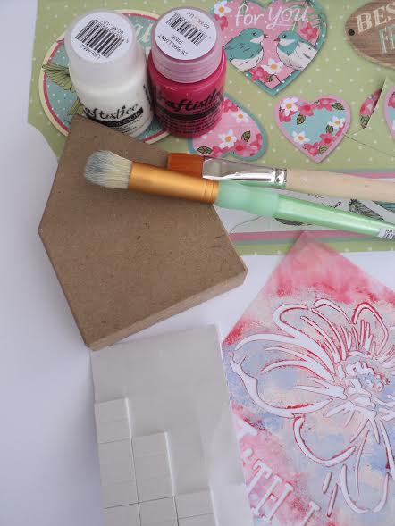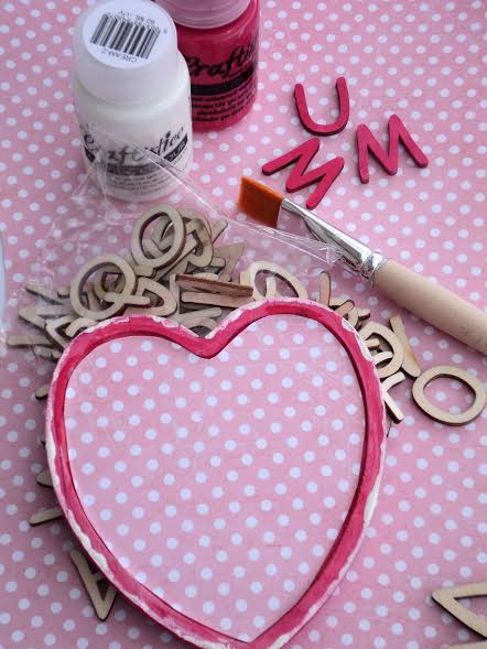3 – Βάφουμε την καρδιά και τα γράμματα για να σχηματίσουμε τη λέξη ΜUM (ή όποια άλλη λέξη θέλουμε), με το ακρυλικό χρώμα Brilliant Pink.