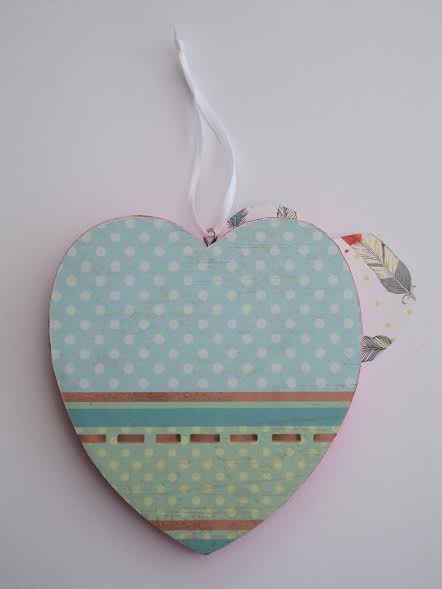 6 – Καλύπτουμε και το πίσω μέρος της ξύλινης καρδιάς με χαρτί scrapbooking.