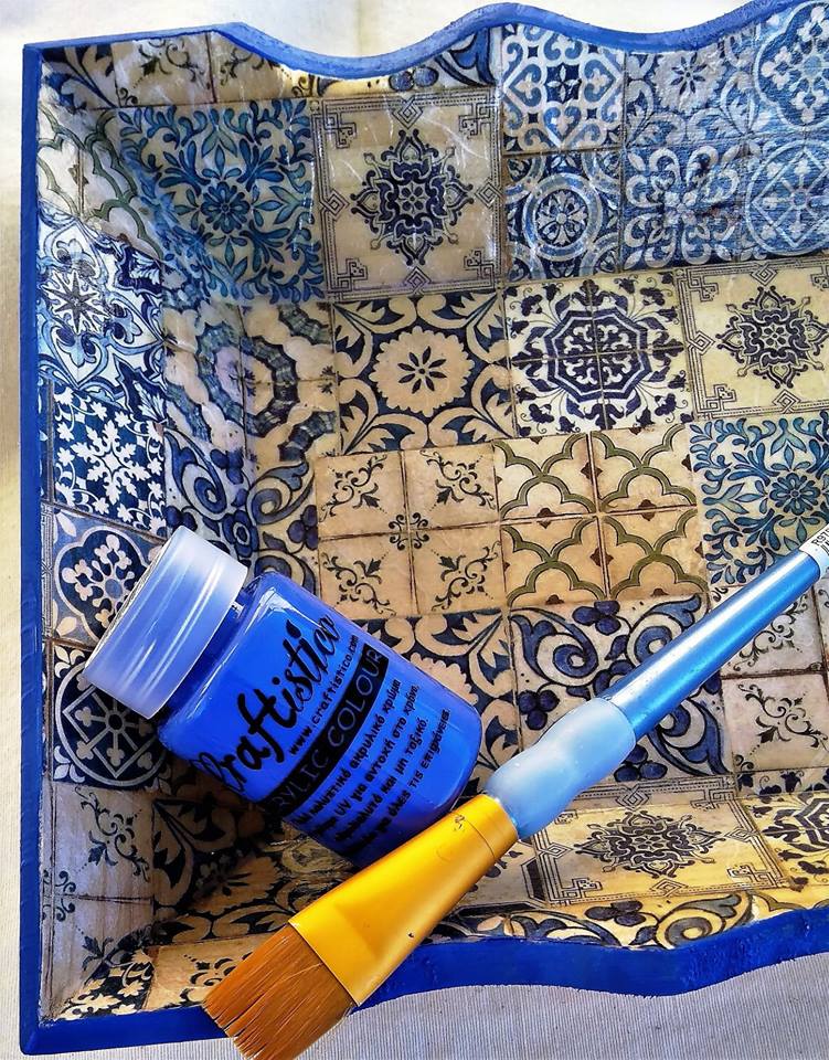 Ξεκίνησαμε δημιουργικά το 2019 φτιάχνοντας μια ξύλινη φρουτιέρα με τα υπέροχα μπλε μοτίβα των ριζόχαρτων της Stamperia! Μια απλή κατασκευή με εντυπωσιακό αποτέλεσμα όχι μόνο για την ξύλινη φρουτιέρα που διαλέξαμε, αλλά για οποιονδήποτε ξύλινο δίσκο, πιατέλα ή ό, τι άλλο φανταστείτε.