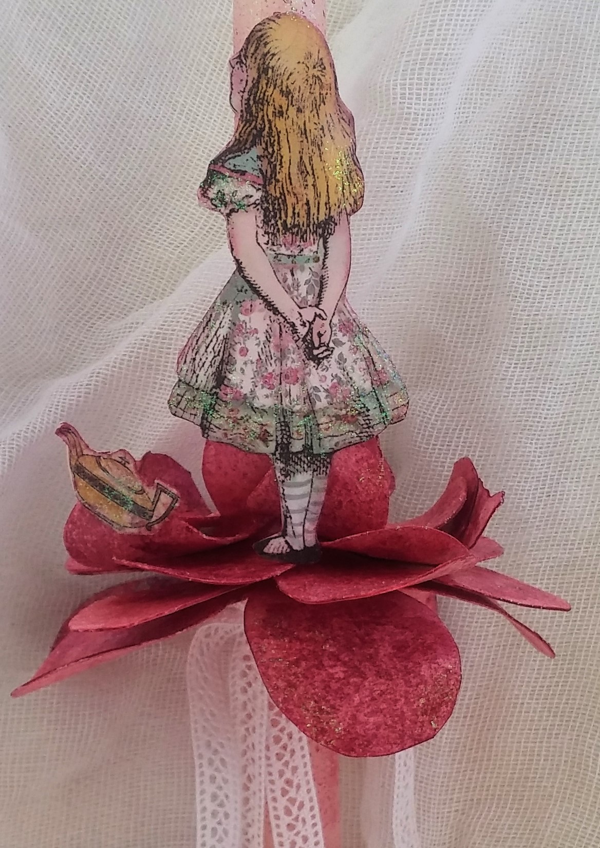 Δημιουργούμε μια παραμυθένια λαμπάδα με θέμα την Αλίκη στη Χώρα των Θαυμάτων, εφαρμόζοντας μεικτές τεχνικές και «ταξιδεύουμε» μικρούς και μεγάλους στη χώρα της φαντασίας της.