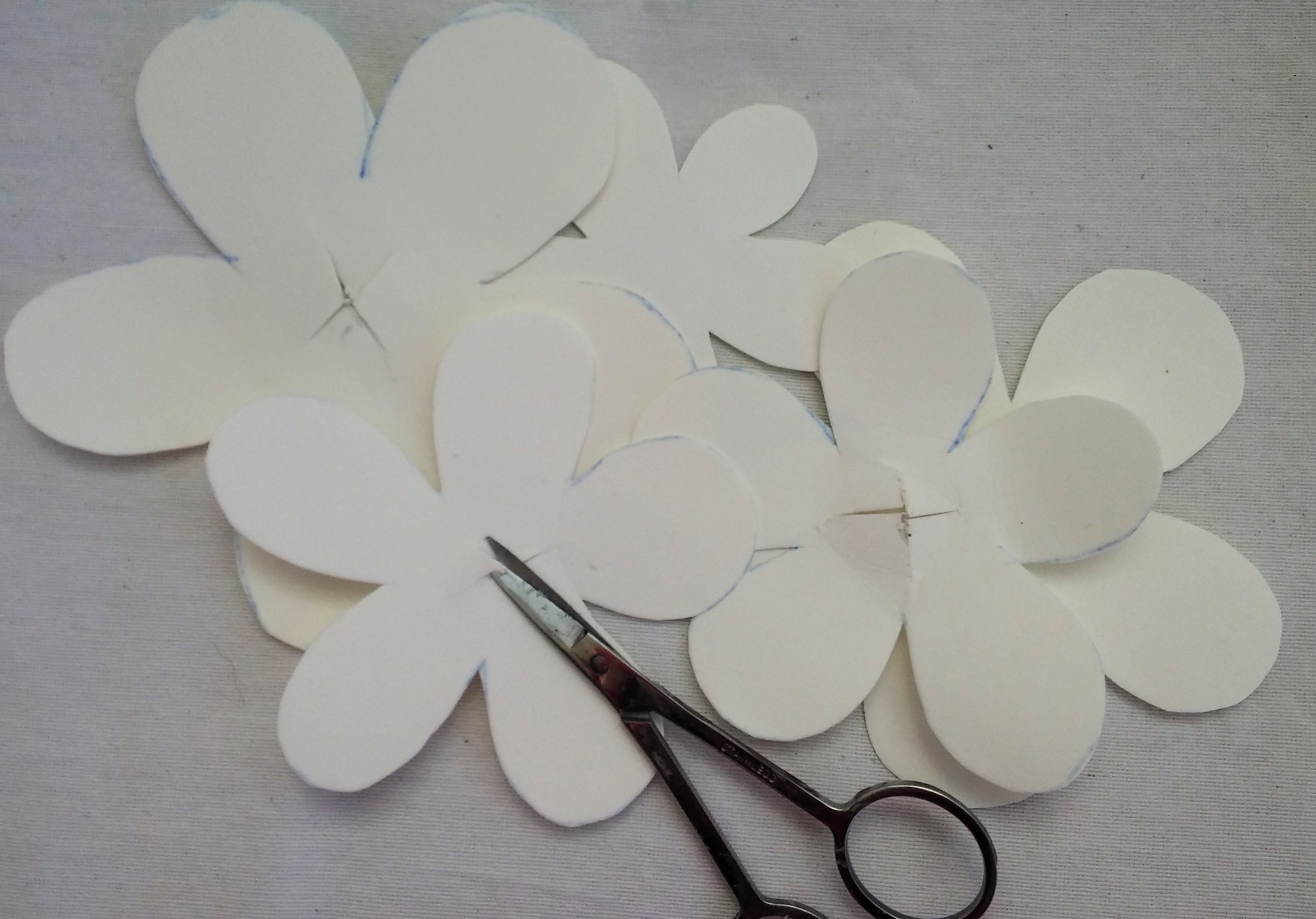 2 – Ακολουθώντας το περίγραμμά τους, κόβουμε 2 από κάθε μέγεθος. Στη συνέχεια κάνουμε με το ψαλιδάκι στο κέντρο ένα άνοιγμα σε σχήμα σταυρού, ανάλογο με το πάχος της λαμπάδας που έχουμε επιλέξει.