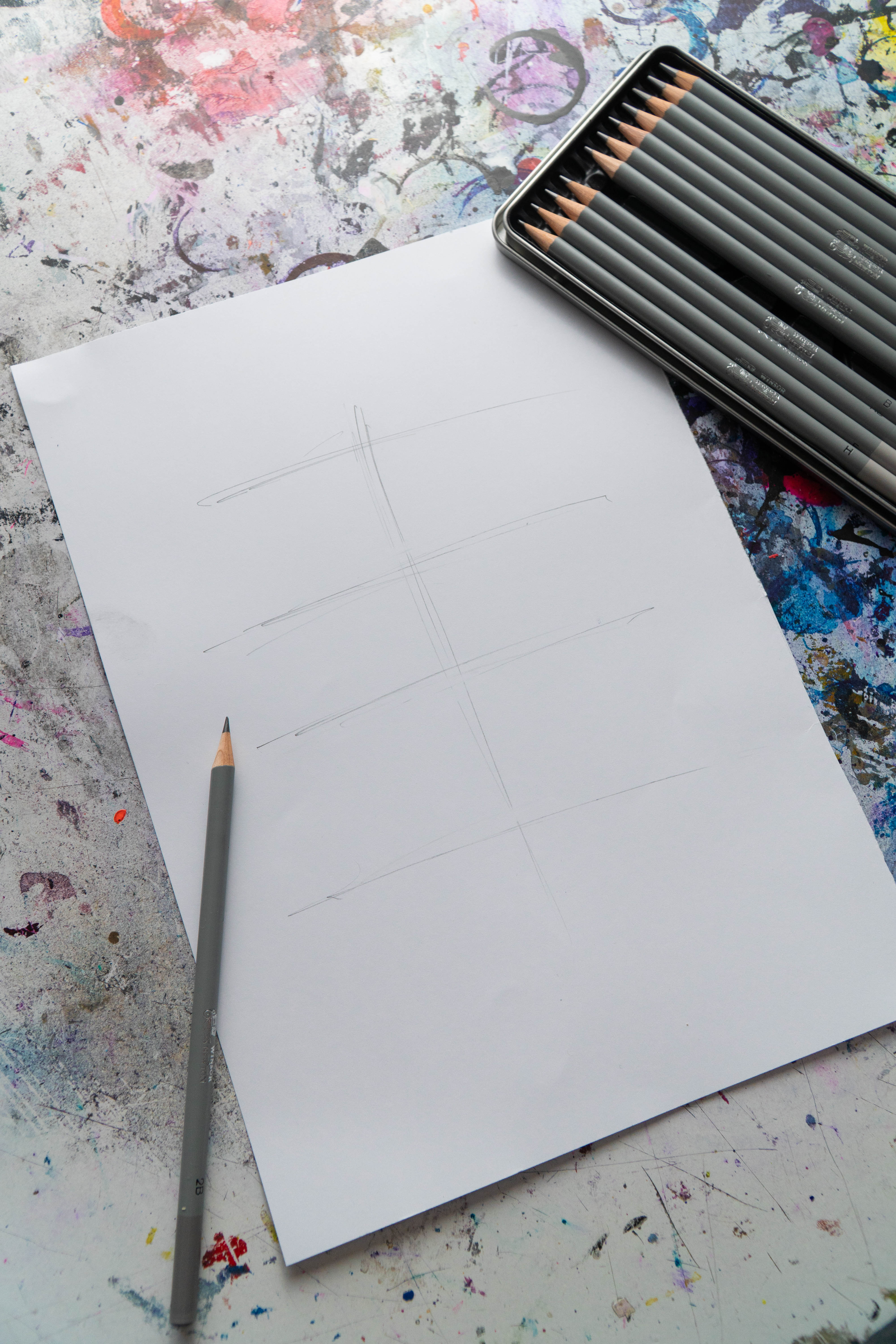 Βήμα 1: Ξεκίνησε σχεδιάζοντας ένα απλό πλέγμα στο χαρτί σου. Το πλέγμα αυτό θα σε βοηθήσει να διατηρήσεις τη συμμετρία και τη σωστή τοποθέτηση των γραμμάτων. Χώρισε τη φράση σου σε τρεις σειρές. Φρόντισε το κέντρο κάθε λέξης να ευθυγραμμίζεται με το κέντρο της σειράς στο πλέγμα, ώστε να διατηρείται η ισορροπία.