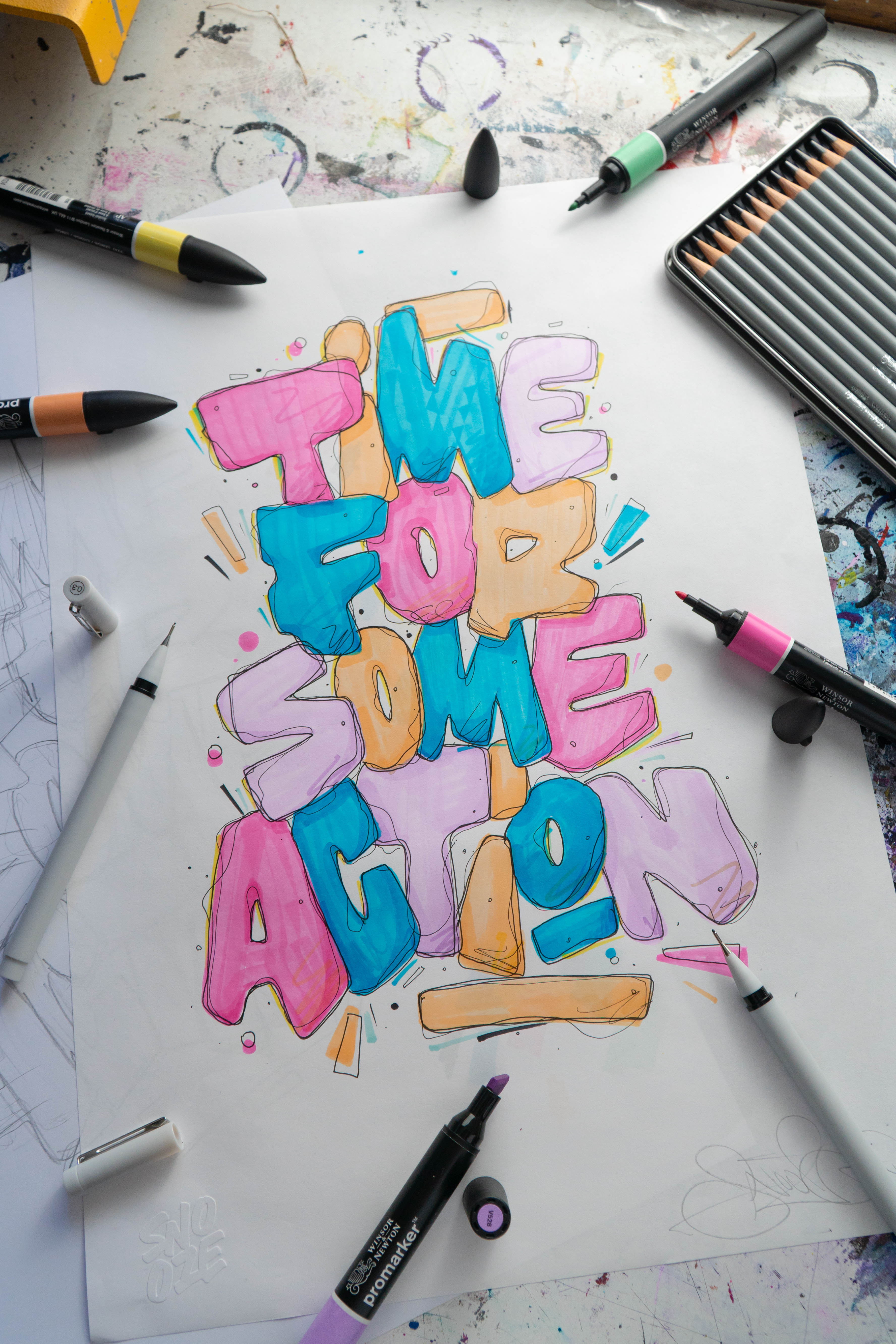 Το lettering δεν έχει όρια, και κάθε σχέδιο είναι μοναδικό! Πειραματίσου με διαφορετικές τεχνικές και χρώματα μέχρι να βρεις αυτό που ταιριάζει στο στυλ σου.