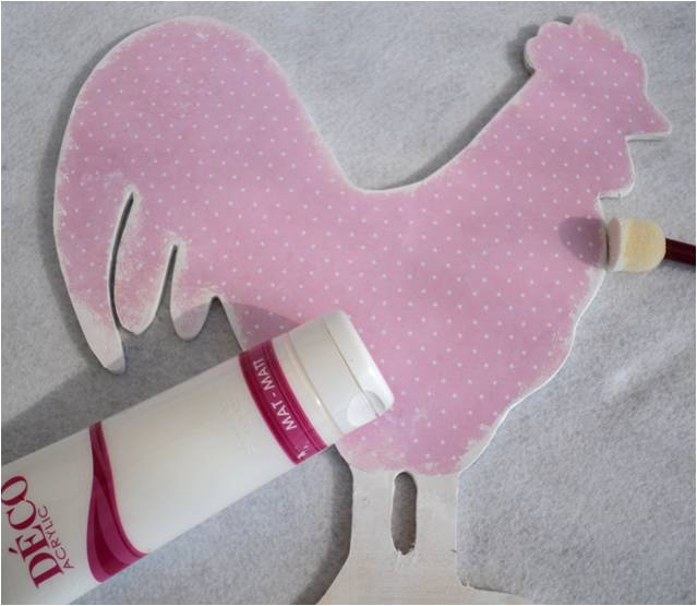 Βάφουμε τον κάθε κόκορα με το λευκό ακρυλικό χρώμα και από τις δύο πλευρές και τους αφήνουμε να στεγνώσουν.