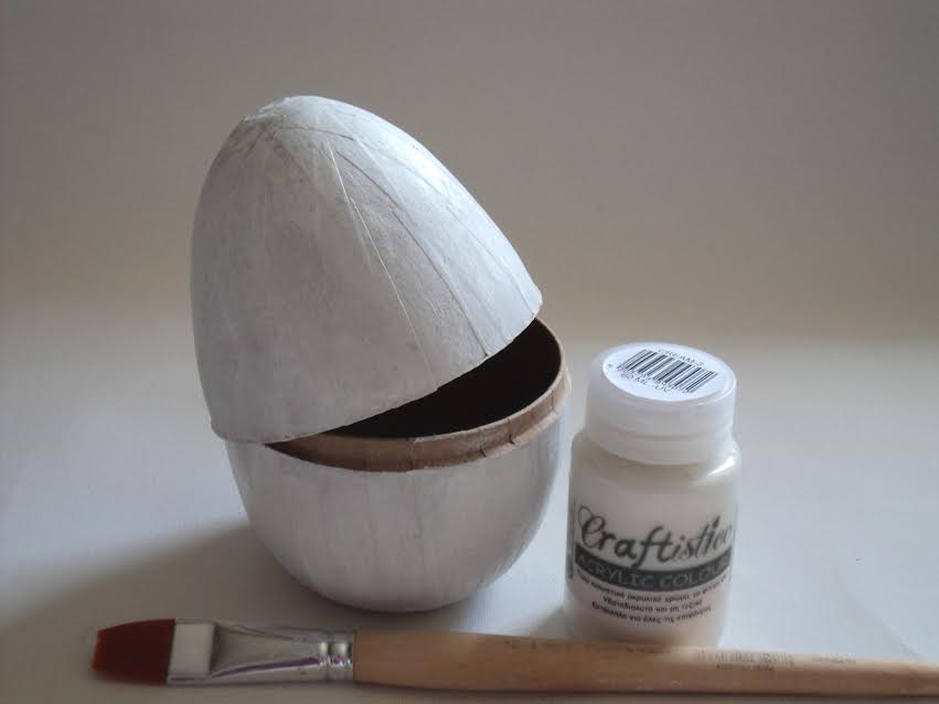 1 – Βάφουμε εξωτερικά την χάρτινη επιφάνεια με το λευκό ακρυλικό χρώμα.