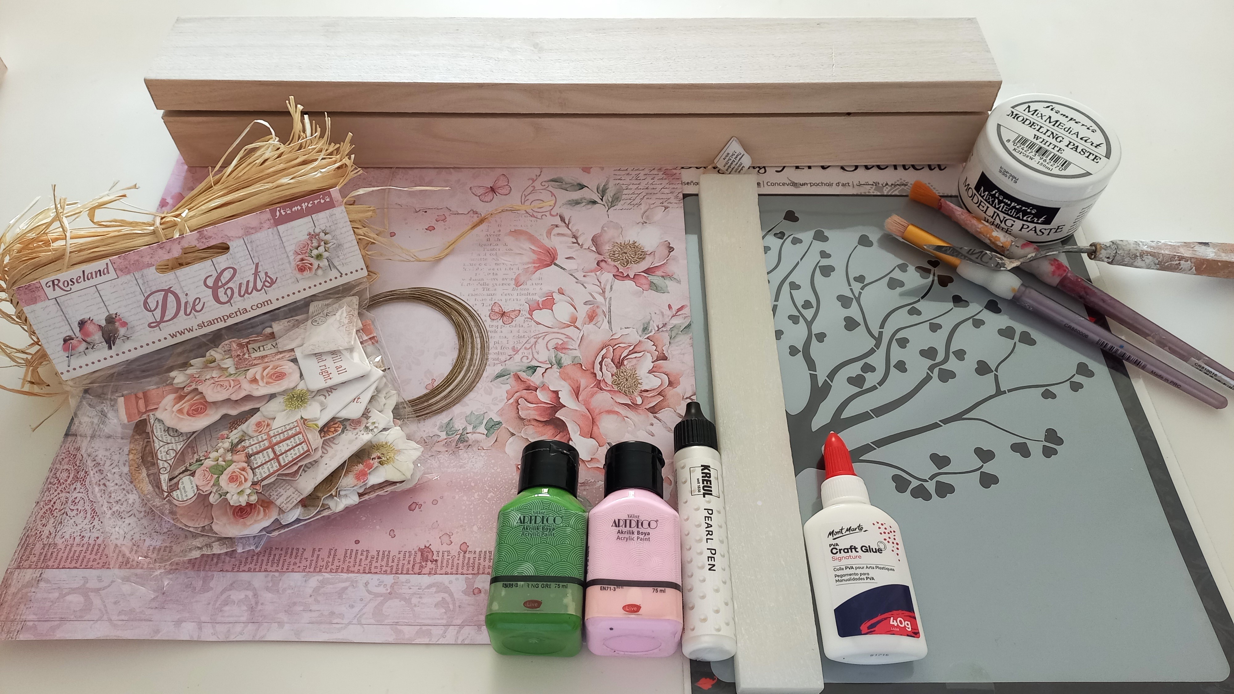 1. Αναμείξτε λίγο λευκό με ελάχιστο ροζ χρώμα και χρωματίστε όλη την επιφάνεια του κουτιού για μια απαλή αίσθηση.