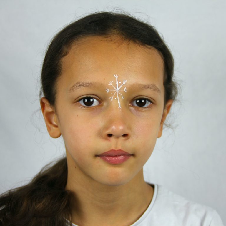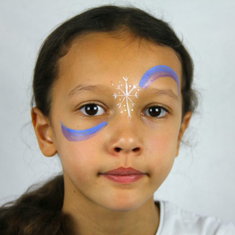 Χρησιμοποιώντας ένα πινέλο και λευκό χρώμα, σχεδιάστε μια χιονονιφάδα ανάμεσα από τα μάτια.