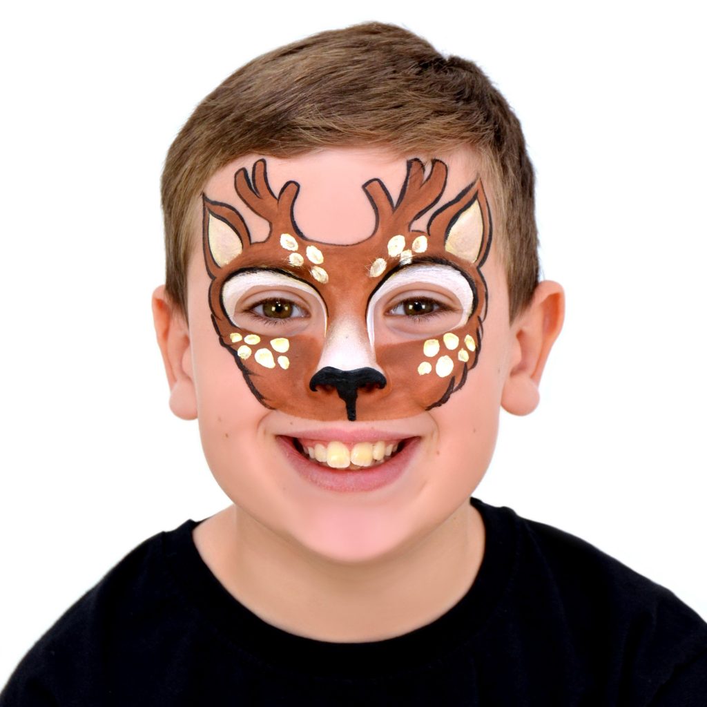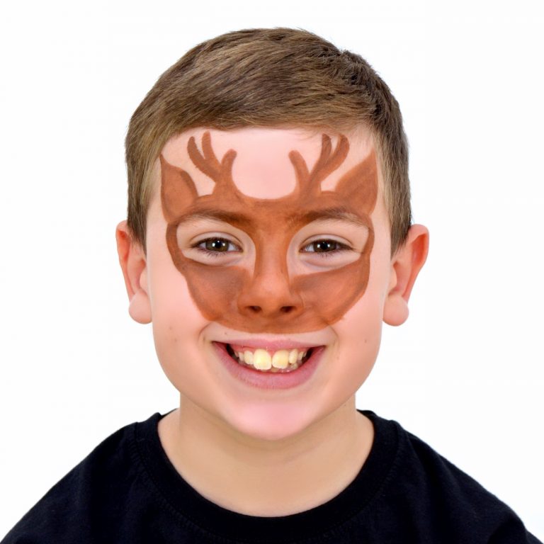 Χρησιμοποιώντας ανοιχτό καφέ χρώμα, δημιουργήστε το σχήμα του ελαφιού στο πρόσωπο, αφήνοντας ένα μεγάλο κενό γύρω από τα μάτια. Γεμίστε το με ένα μεγάλο πινέλο ή σφουγγάρι.