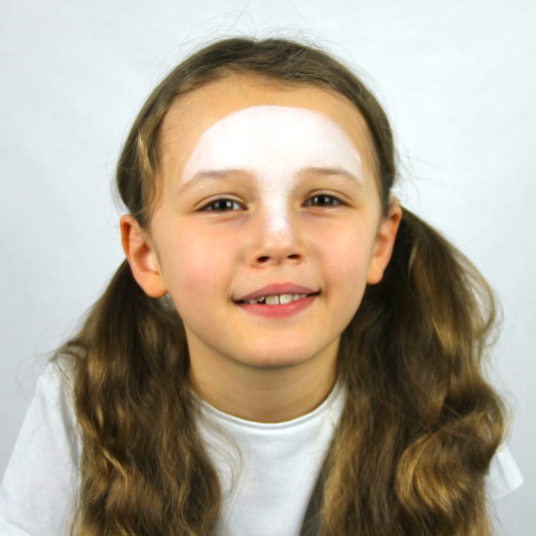 Απλώστε λευκό χρώμα με σφουγγάρι στο μέτωπο και κάτω από τη μύτη.