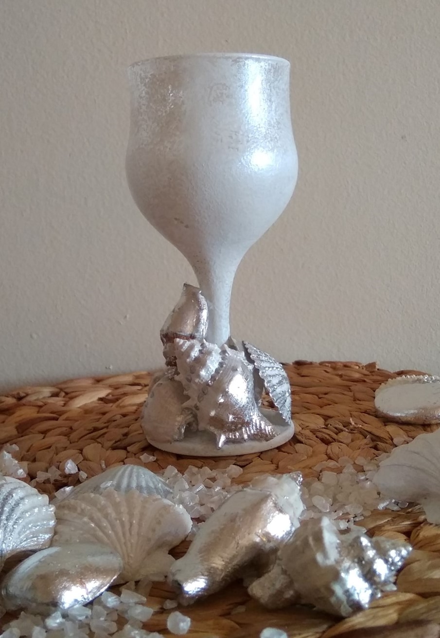 - Κολλάμε τα κοχύλια μας με κόλλα κρυσταλιζέ πάνω στην επιφάνεια του ποτηριού.