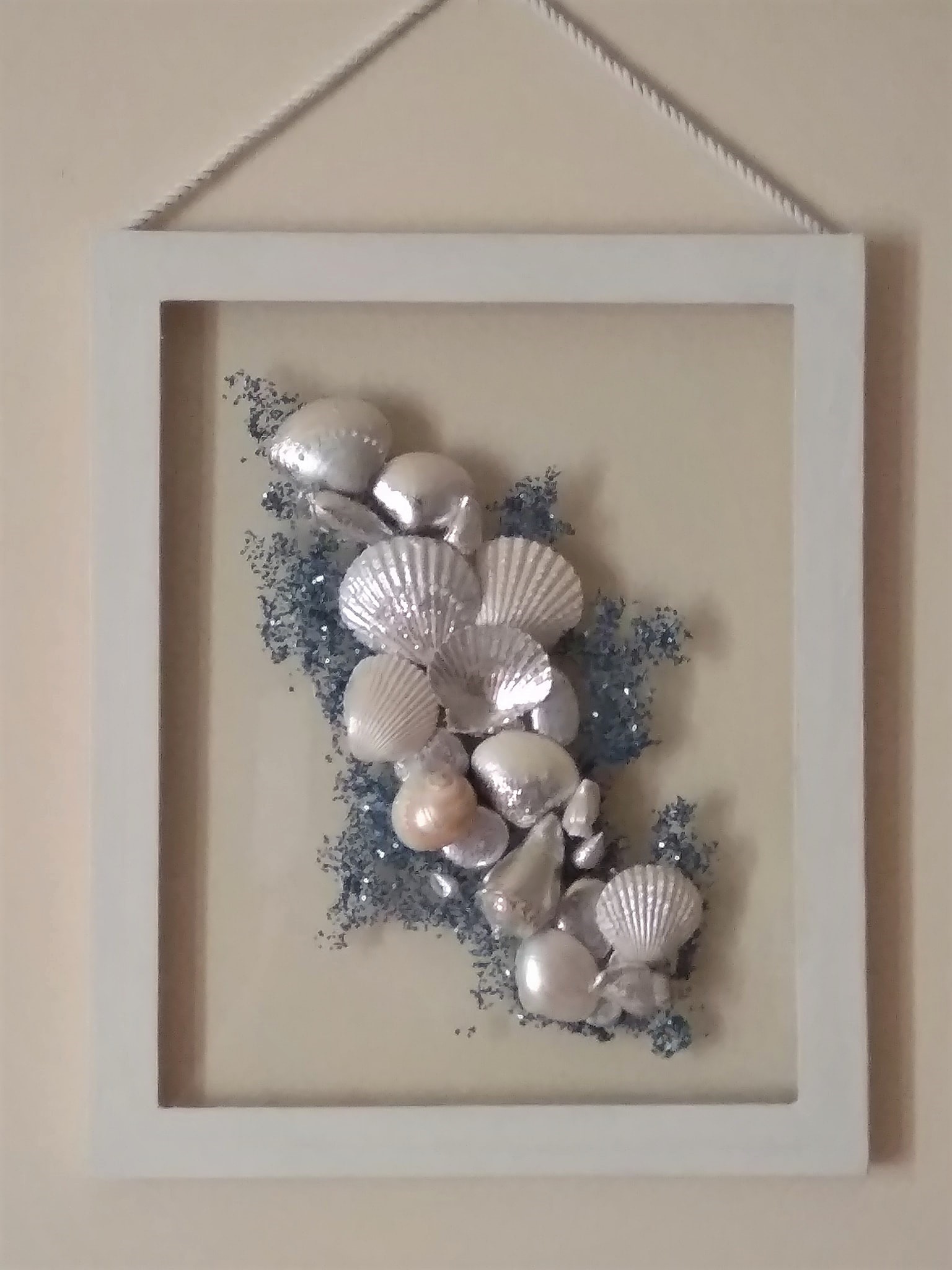 Κορνίζα τοίχου διακοσμημένη με κοχύλια και βότσαλα