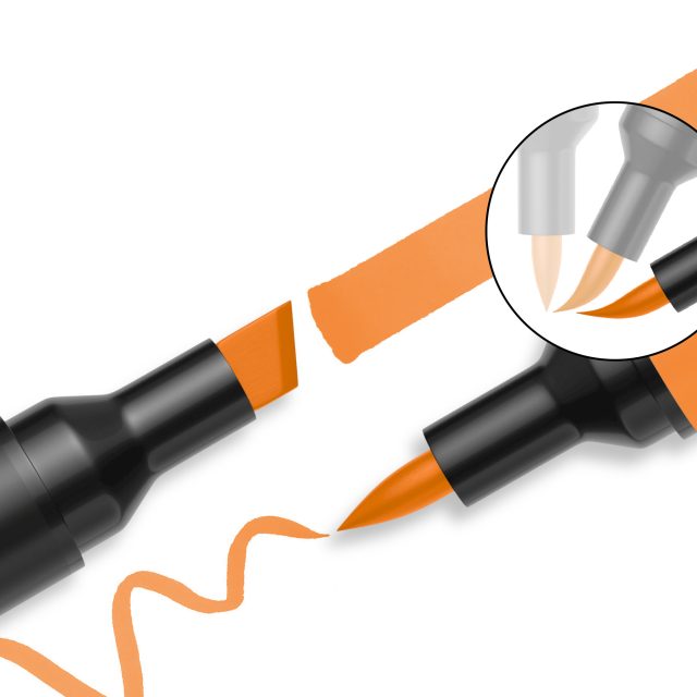 Οι μαρκαδόροι Promarker BrushΔιαθέτουν υψηλής ποιότητας εύκαμπτη μύτη πινέλου για ρευστές πινελιές και ακριβή έλεγχο των γραμμών και μια πλακέ διαγώνια μύτη για ευρείες πινελιές για σκίαση μεγαλύτερων περιοχών. Μπορείτε να πραγματοποιήσετε λεπτές, ακριβείς γραμμές για λεπτομέρειες και σημεία, ενώ ταυτόχρονα μπορείτε να δημιουργήσετε πιο πλούσιες, ευρείες πινελιές για σκίαση ή γέμισμα μεγαλύτερων περιοχών. Προσφέρουν ελεγχόμενη ροή μελανιού που εξασφαλίζει ακρίβεια, ευελιξία και λεπτομέρεια στη σχεδίαση.