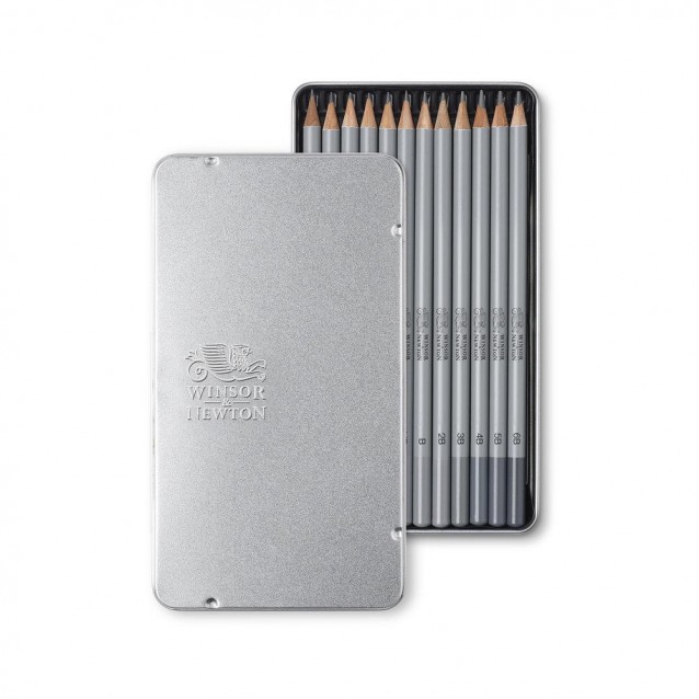 Winsor & Newton Μεταλλική Κασετίνα 12 Μολύβια Γραφίτη Medium Studio Collection